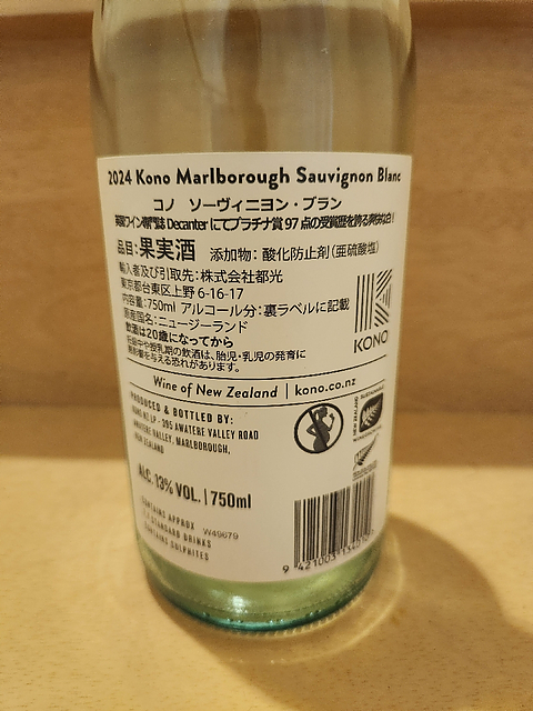 ニュージーランドのソーヴィニヨンブラン。 塩味も感じ、味も少し濃くて美味しい。