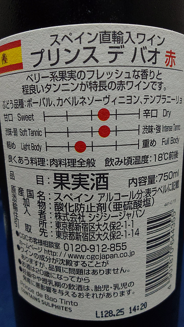 サントクで購入したスペインの安ワイン。確か398円くらい。 目立った特徴は無いものの、赤ワインとして無難な味。値段の割に悪くない。