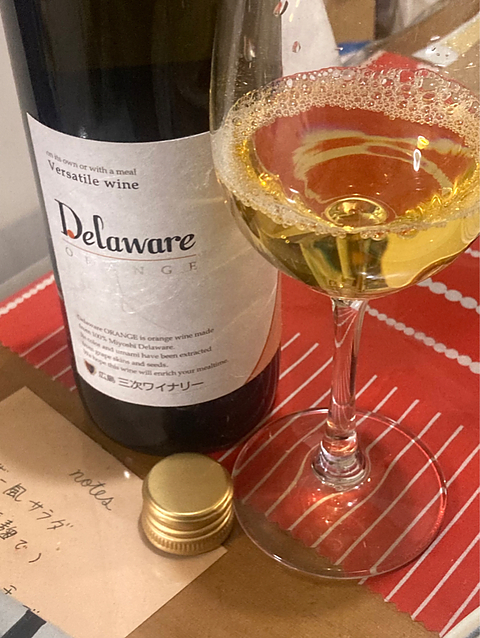 広島の三次ワイナリー デラウェア オレンジ 2021年 地元広島産のデラウェアを使用 フレッシュな柑橘に少しオレンジの香り 予想以上にキレイめな作りにオレンジワインらしい程良いコクでなかなか美味しい♪ 自分が作った、天然ブリとネギのバター醤油炒めやお惣菜の筑前煮によく合いました(^^)