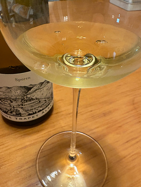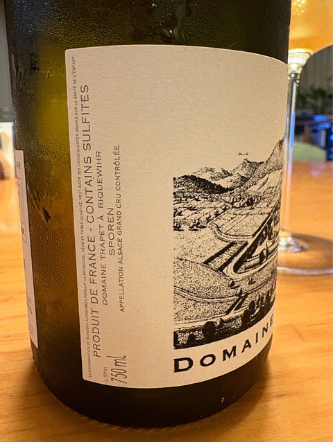 2016 スポーレン ドメーヌ・トラペ・アルザス ゲヴェルツトラミネール グラン・クリュ スポーレン リクヴィール オー・ラン アルザス/フランス 土曜日のワイン。 つれあいと近所のもつ焼き屋で、熱燗を飲りながら軽い晩ごはんの後、帰宅してからちょこちょことアテをツマミながら家呑み。 アマ○ンの期間限定ポイントが期限ギリギリになり、慌てて購入したワイン。 実は、トラペのアルザスワインをいただくのは初めてなんですが、これが素晴らしいワインでした♡ 外観は、光り輝く、明るく淡い黄金色。透明度も申し分ないレベルで、見ているとトキメキますね(笑) グラスからは、光と共に薔薇や白桃、ライチなどの芳香が溢れ、チョークやフリントなど、カチカチ✨という音が聴こえそうな硬くて白っぽいミネラルの欠片が香ります♪ 口に含むと…甘い! のですが、ドライにも感じる不思議な味覚体験(苦笑) さらに、ふわりとエレガントな繊細さと、様々に表情を変える複雑さ、タンニンのような収斂を感じさせる力強さもあり、目眩(めくるめ)くようなドラマチックな味わいです‼︎ ドライなのに甘いのか? 甘いのにドライなのか?? 感じ方は、人それぞれだと思いますが、甘さとドライさが同時に感じられのは、高濃度の旨みや高純度の酸、そして高含有のミネラル成分のなせるわざかと感じました。 いやはや、これがグラン・クリュの賜物ということなのですね⁉︎ 多彩な味覚要素が、それぞれ過剰なぐらい詰まっていても、矛盾や不都合をまったく感じないバランスの良さも特記事項として記憶に留めておきたいと思います✨✨