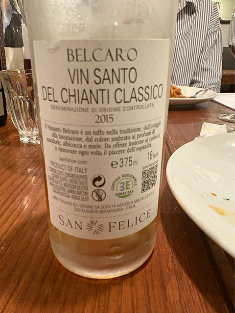 2015 サン・フェリーチェ ベルカーロ ヴィン・サント・デル・キャンティ・クラッシコ トスカーナ/イタリア vinicaに感謝✨ 10/2サンジョヴェーゼ会@西荻 ダ・マサ・その11 いつも変態ワインを持ち寄る「ワイン変質者の会」(命名:DaMasaさん)から発展したワイン会。 11本目は、トスカーナに戻って締めのワイン、ヴィン・サント。 やはり、ワイン会の締めは甘口ワインがしっくりきます。 甘美な余韻に浸るひと時が最高ですね✨ でも、さすがは変態さんたちの「サンジョヴェーゼ会」。まだ終わりじゃないんです(笑)