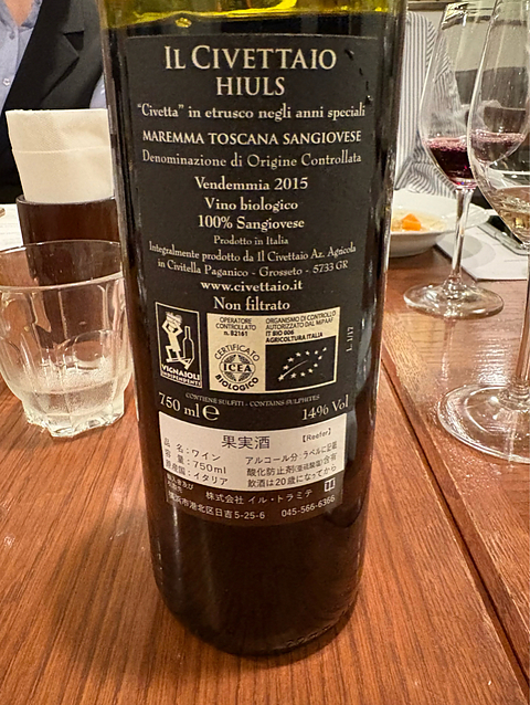 2015 イル・チヴェッタイオ DOCマレンマ・トスカーナ・サンジョヴェーゼ ヒウルス マレンマ トスカーナ/イタリア vinicaに感謝✨ 10/2サンジョヴェーゼ会@西荻 ダ・マサ・その7 いつも変態ワインを持ち寄る「ワイン変質者の会」(命名:DaMasaさん)から発展したワイン会。 7本目は、大樽熟成、しかもぶどうのしゅうかから10年目の飲み頃ワイン。 とても熟れた感じの味わいだったと思いますが、この辺から記憶が定かではありません(泣) たぶん、とても美味しかったデス(爆)