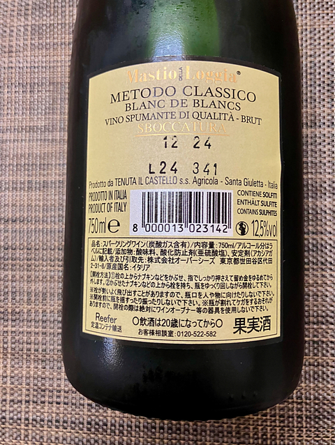 マスティオ・デッラ・ロッジア メドド・クラシコ ブラン・ド・ブラン 生産者 カンティーネ・ピローヴァノ イタリア、ロンバルディア州。 品種はシャルドネ100%。 トースト、レモン、柑橘の香り。 シャンパーニュ方式の泡で、きめ細やかで柔らかい。後味に柑橘系の皮みたいな苦味もある。 美味しいは美味しいんだけど、そこまでこれといった印象はなく。エチケット裏の添加物を見ると、酸味量と安定剤が入ってる。だからダメとは言わないけど、せっかくシャンパーニュ方式で作ってるのに勿体無いなとは思う。 どうなんだろうね、この辺り。