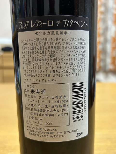 勝沼醸造 アルガ レティーロ・デ・カタベント