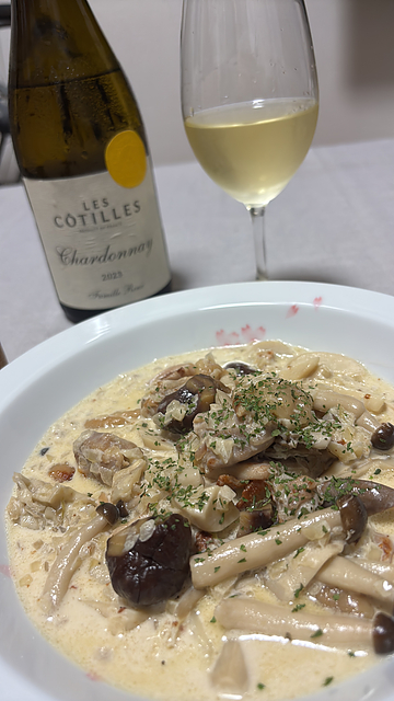 やっと秋らしくなってきたところでストックの白ワインを開けてみました。 爽やかな柑橘系の香りに誘われてサクサク飲むと後からしっかりとした味わいが追いかけてきました。 鶏ときのこと栗のクリーム煮を作ってみましたが、特に栗のホクホク感甘みにとてもよく合いました。