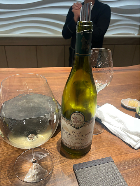 Dom. Thierry Pinquier Bourgogne Aligoté La Corvée Saint Nicolas 2020 ドメーヌ・ティエリ・パンケ ブルゴーニュ アリゴテ ラ・コルヴェ・サン・ニコラ この日は三条のみなさまと新潟市の「鮨 」に伺いました。 N様がお持ち込みのちょっと珍しいアリゴテ。 いい具合に落ち着いた熟成があります。 やっぱり酸が魚?に鮨の酢に合います。 アリゴテなのにしっかり厚みがあって美味しいです。ミネラルも魚介類にあっている? 鮨とワインって難しいと思ってましたが親方は酢飯の酢をネタごとに変えてるそうでそれがワインに合ったものにしてるのかも⁇