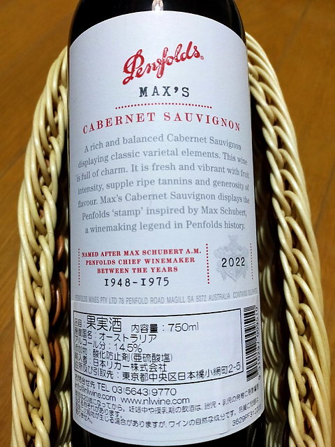 ワインPenfolds Max's Cabernet Sauvignon(2022)