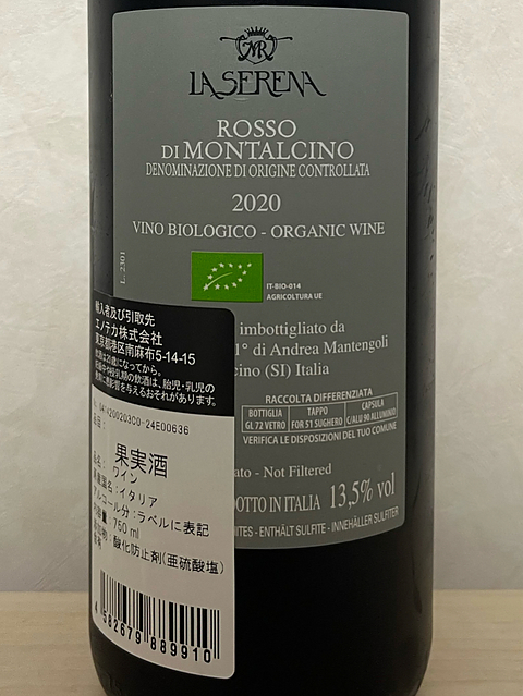ラ・セレーナのロッソ・ディ・モンタルチーノ 2020 イタリア、トスカーナ サンジョヴェーゼ・グロッソ 濃いめの赤、縁は小豆色。黒系果実のコンポート、ほんのり東洋系のスパイス。熟したベリーの果実味、バランスの良い酸味、強めのタンニン。 イタリアの赤を飲みたくなり、ロッソ・ディ・モンタルチーノを開けました(^^) 開けたてはやや硬く閉じ気味でしたが、しばらく時間が経って香りや味わいが広がってきました♫ こちらはvinicaを始める前に一度飲みましたが、その頃とはエチケットが変わったみたいです(^^)