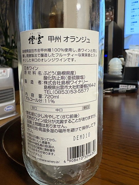 島根ワイナリー 橙雲 Vin Orange 甲州
