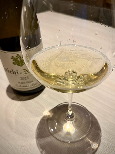 余市Loopでの日本ワインのペアリング・ディナー。 相方はペアリングではなく、グラスでドメーヌ・タカヒコ・ヨイチ・ノボリ・ナカイ・ブラン2023をい頂きました。 こちらは中居農園のケルナー100%になります。 綺麗なレモン・イエローからとてもアロマティックなライチやピーチ、日本の柑橘類スパイスや麦、スパイス、ハニーなどを感じます。 とてもリッチで甘美な果実味、スパイシーな酸味からのとてもミネラリーでハーブ香るフィニッシュ。少しローヌの白やロワールの香水系のワインを思い出しますが、普通のケルナーとは違う、素晴らしいポテンシャルのワインだと思いました。
