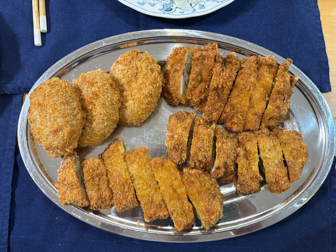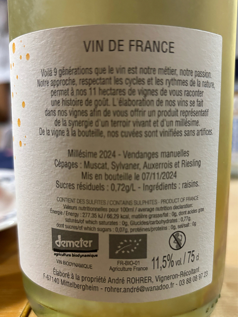 『No.1342 この絶妙なバランス感覚』 【ビュル・ド・ヴィ/2023年】 アンドレ・ロレーヌ/フランス・アルザス ・オーセロワ 40% ・シルヴァネール 40% ・ミュスカ 15% ・ゲヴェルツトラミネール 5% 合わせた夕飯 ・とんかつ盛り合わせ(ロース、ヒレ、チキン、コロッケ) 王冠を静かに抜栓…吹き出し無し!よし。グラスに注ぐ…少し濁りのあるグリーンがかった薄い黄色。ガス感はさりげなさげ。八朔のような和の柑橘やグレープフルーツ、マスカット。少しハーブや若草のニュアンス。これだけで美味しいであろうことが想像つく。 そして一口…あぁ、この軽快な味わいがたまらない。口中に広がるシトラス、八朔の柑橘にマスカット、桃、うっすらライチといった豊かな果実味。心地良いハーブやヨーグル感。アフターに感じる昭和のグレープフルーツ的ほろ苦さ。ガス感は極めて穏やか。このバランスの感じが実にいい。前シーズンはもう少し酸味が強かったが、今ヴィンテージは、酸味、果実味、ほろ苦さのバランスが絶妙、完全にに自分好み。 今夜は、贔屓のとんかつ屋のテイクアウトだが、このカツ類と実に相性が良い。そのままで食べてもよし、辛子を和えて食べてもよし、ソースでも良し。とにかく相性が良い。食事中だと先程のバランスの良さが際立つ感じ。妙に出すぎず、それでいてお互いの良さを引き出し合いつつ、食事にはしっかり寄り添う感。 正直、堅牢なボディ感ではないが、このワインにそれは求めないであろう。軽快な飲み口と豊かな果実味と、気持ち良いガス感で、喉の渇きをいやしつつ、美味しい食事をいただくための飲み物。まさにそんな感じ! 新しいエチケットもシャレオツで結構!ごちそうさまでした。