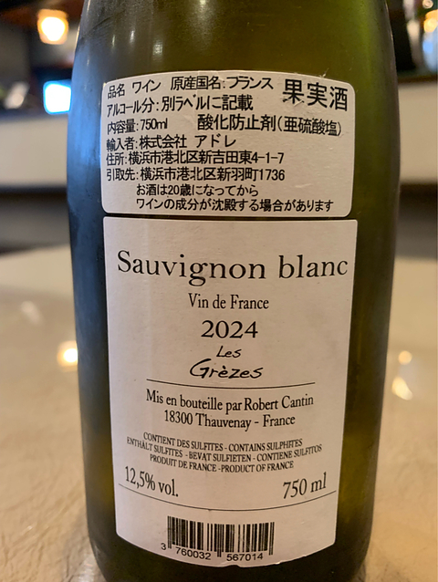 ワインRobert Cantin Les Grèzes Sauvignon(2024)