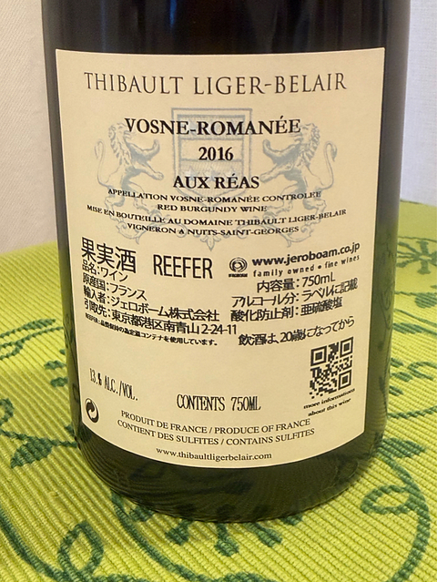| ワイン | Thibault Liger Belair Vosne Romanée Aux Réas(2016) | ||||||||||||||||||||