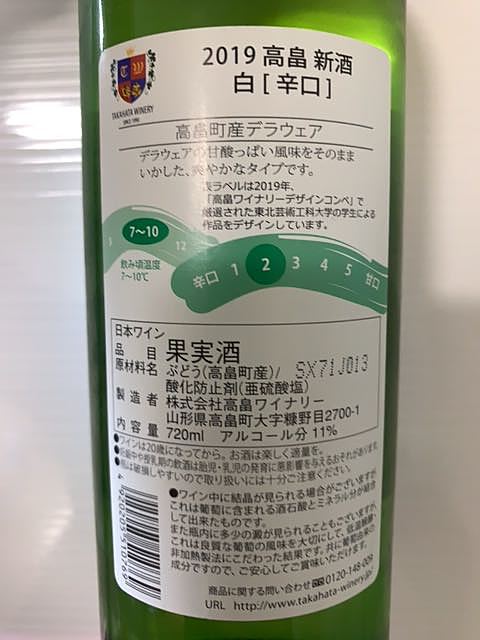 TAKAHATA WINERY 高畠 Takahata Nouveau 2019 白 辛口