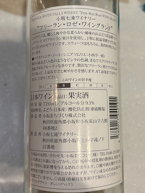 十和田湖近くの小さなワイナリーで購入。 この規模でこんなにというほど種類多く、試飲したどれもレベル高く驚いた。 このロゼワインも甘味がありながらシャープな酸味もあり面白味のある味わい。