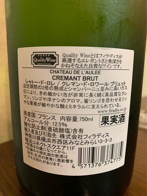 シャトー・ド・ロレクレマン・ド・ロワール ブリュット・ゼロ フランス/ロワール シュナンブラン 娘が帰ってきたので、泡も飲みました〜♪ 和食には? フレンチの方が合ったかも?? フレンチにはバッチグーだったのに… おかしいなぁ(˙˙*)?