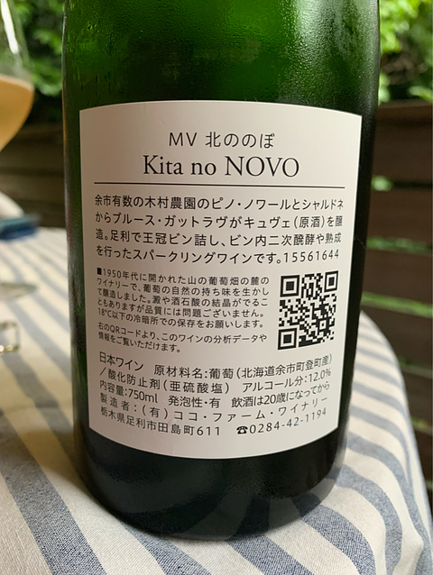 ここファームワイナリー 北ののぼ 10Rワイナリー (北海道) ココ・ファーム・ワイナリー 陽はのぼる、美しき泡たちのぼる。「MV北ののぼ」は、ビン内二次醗酵のスパークリングワインです。北海道のピノ・ノワールとシャルドネから、ブルース・ガットラヴがキュヴェを醸造。足利で王冠ビン詰して熟成期間は60ヵ月以上。ルミュアージュもデゴルジュマンも、手仕事によるものです。国際的な会議の夕食会でもお使いいただきました。 と載っていました〜 主人と映画を観てから〜 B級グルメツアー〜 自宅のベランダ飲み♪