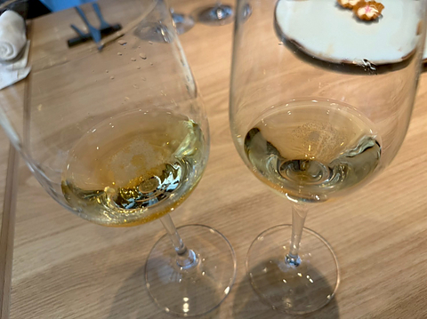 1995 ドメーヌ・ルージョ ムルソー モナティーヌ コート・ド・ボーヌ ブルゴーニュ/フランス〈マグナムボトル/1500ml〉 vinicaに感謝✨ 9/27ワイン会@神田三崎町 divino・その4 4本目は、マリエーさんからの熟成ムルソー、しかもなんとマグナムボトルです! このつくり手のワインをいただくのは初めてですが、ムルソーを本拠に5世代にわたってワインづくりに携わってきた、知る人ぞ知る「ムルソーの至宝」だとか。 2010年、現当主に代替わりして、以後、ぶどう栽培は有機農法に転換し、醸造においても自然派志向に大きく舵を切り、2020年にはオーガニック認識(エコセール)も取得したそうです。 ということは、この1995年産のマグナムは、現在とは異なる流儀や哲学でつくられたワインということですか? まぁ、当代のワインとの比較もできませんので、私としては、目の前の若いムルソーと比較しながら楽しむのみです(笑) ちなみに、「ラ・モナティーヌ/La Monatine」が正式な畑名で、ムルソー村の入り口辺りにある村名格の畑、「スー・ラ・ヴェル/Sous La Velle」に隣接する、標高の低い区画だそうです。 今回いただくモナティーヌは村名格の畑で獲れたぶどうからつくられたワインですが、この畑でムルソーのワインを名乗れるのはほんの一部だけで、大部分は広域ブルゴーニュのワインとなります。 こちらのドメーヌのHPを見ると、現在では「ムルソー・モナティーヌ」はオンリストされておらず、ラインナップにあるのは広域ブルゴーニュAOCのラ・モナティーヌのみでした。 ほかのつくり手のワインにも、ムルソー村名格のモナティーヌは、私が探した範囲では見当たりませんので、かなりレアなワインであることは間違いないでしょう。 ワインは、とても深いみのある、明るくクリアな色味のグリッターゴールド✨ キラキラ感が強く、見ているだけでドキドキが止まらなくなる感じ(苦笑) 香りは、見た目に反して(?)もの凄く若々しく、これには、参加者一同から驚きの声が上がりました♪ ムルソーらしいストーンフルーツ系の程よく熟れた果実香と、酸っぱくない柑橘の刺激、ヘーゼルナッツやローストアーモンドの香ばしさ、ミントのようなグリーンっぽいハーブの香りも漂います。 熟成感は、確かに存在するのですが、それ以上にフレッシュな果実のアロマが強い印象です。 味わいもムルソーらしく、クリーミーでコクのあるテクスチャ、充実した果実の旨み、綺麗で伸びやかな酸、全体を締める効き目抜群のミネラル感…クラシックなスタイルのムルソーの味わいって、こんな感じかなあ? と思わせるワインでした。 余韻は、「重厚」というわけではありませんが、リッチで深みがある感じ。 マグナムということもありますが、手酌で何倍もおかわりして、この日、いちばん沢山飲んだワインがこちらです٩( ᐛ )و マリエーさん、いろいろな意味で貴重なムルソーを飲む機会をいただき、ありがとうございました‼︎ コンディションも申し分なく、本当に素晴らしいボトルでした。 いただいたカヌレも美味しかったです♡ 今度は、オールド・ミアーニの会でもいかがですか?