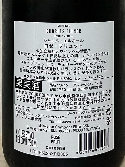 シャルル・エルネールのロゼ・ブリュット フランス、シャンパーニュ シャルドネ50、ピノ・ノワール50 きめ細かい泡。濃いめのサーモンピンク。赤系果実のコンポートやリキュールの甘い香り。しっかりした果実味、バランスの良い酸味。 美味しいロゼシャンパーニュでした(^^) これはまた買いたいです♫