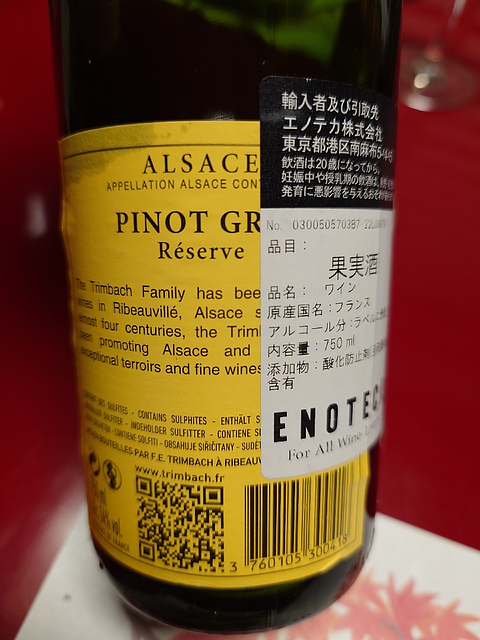 トリンパックのピノ・グリ。 洋ナシやカリン、白桃にマイヤーレモンなど。 サラリとした口当たりですが、ほのかに甘く、酸はなめらか。苦味はあまりなく、甘さがトリンパックらしいなと感じます。