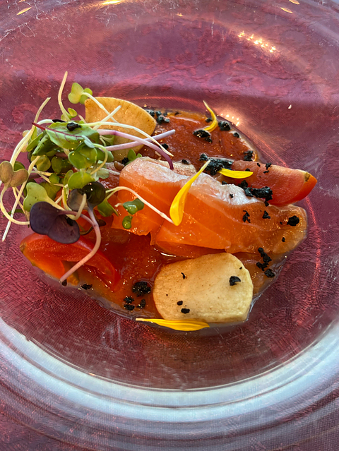 シャルル・ラショーのブルゴーニュ・アリゴテ・レ・シャン・ダルジャン 2020 フランス、ブルゴーニュ アリゴテ この日は天空のアリゴテ会@汐留でした♫ ワインは3本同時に抜栓し、テイスティングはヴィンテージの若い順にしました(^^) こちらはmeryLさんよりご提供いただきました(*^^*) 料理は魚介中心で、アリゴテと良い相性でした♫ シャルル・ラショーのアリゴテはとても飲んでみたかったので、念願がかないました!! meryLさん、大変貴重なワインをありがとうございました(*^^*) この日はメモをとっていなかったのでテイスティングコメントはAIに助けてもらいました(^_^;) 外観: * 輝きのある淡い黄金色。 香り: * アロマティックで表現豊か。 レモンゼスト、グリーンアップル、白桃などの明るい果実のアロマに、アカシアの花のような繊細なフローラルなニュアンスが重なります。 * アーモンドやヘーゼルナッツ、白い花のヒントも感じられます。 * やや還元的な香りがすることもありますが、時間とともに開いてきます。 * 土のニュアンスも感じられることがあります。 味わい: * 非常に濃厚で濃密。 驚くほどのリッチな味わいで、ハチミツのような風味も感じられます。 * 強靭な酸とミネラル。 非常に生き生きとした酸があり、骨格をしっかり支えています。湿った石のようなミネラル感が特徴的です。 * オイリーでなめらかな舌触り。 アリゴテとは思えないほど、豊かで滑らかなテクスチャーが感じられます。ムルソーのような高級感を感じるというコメントもあります。 * ほのかな苦味や塩味も感じられ、複雑さを与えています。 * 純粋でクリーンな果実味が際立ち、エレガントなスタイルです。 * 若いうちはやや堅さがあり、飲み頃はまだ先と感じる人もいますが、既に調和がとれています。 余韻: * 長く、印象的な余韻。 爽やかな塩味を伴い、きれいに続いていきます。