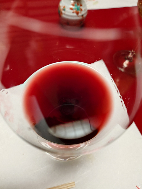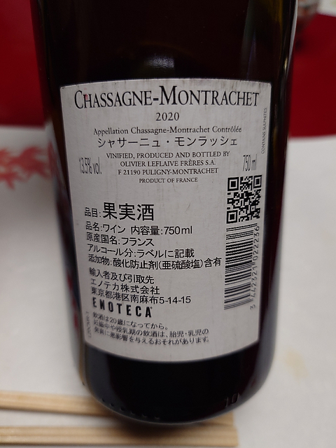 ルフレーヴのシャサーニュ・モンラッシェ・ルージュ。 エッジにオレンジのニュアンスが見えるガーネットの色調。 ブルーベリー、ラズベリーにカシス、そこに紅茶や鉄っぽいニュアンス、セミドライの肉、シナモンや甘草などの甘やかな香り。複雑さを感じさせる香りです。 アタックはやや強め、ほのかな甘さとなめらかな酸があり、タンニンは緻密。 ジューシーさがありつつエレガント。 これはとても好みの味わい。