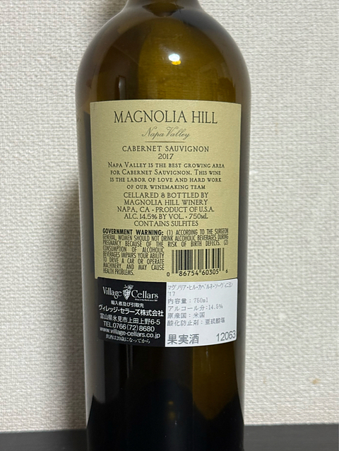 マグノリア ヒル カベルネ ソーヴィニヨン 2017 カリフォルニア ナパ ヴァレー 日本では「ナパ ハイランズ」が有名な「スミス アンダーソン ワイン グループ」が造る1本。 ブドウの供給元の畑はドミナス エステート近くに位置するヨントヴィル地区とオーパスワンから道を下ったオークヴィル地区の2つ。 2つの畑はそれぞれ無灌漑栽培が行われ、清らかさと酸のバランスを兼ね備えた条件が揃っている。 100%除梗、ステンレスタンク発酵、フレンチオークとアメリカンオーク樽で16ヶ月間熟成。 カベルネ ソーヴィニヨン95% プティ ヴェルド5% 色調は深みのある赤紫。 香りはブラックベリーやアメリカンチェリー、リコリス、杉の木。 凝縮感のある果実味と滑らかなタンニン。 8年の熟成ながら甘酸っぱい果実味からは依然若々しさを感じる。 カリカベ定番のヴァニラ感は控えめ。 ミディアム〜フルボディ。 カリカベらしく当然分かりやすい味わいなんだけど、意外にも良質ボルドーで感じられる杉の木のニュアンスも有り好印象。 ナパでここまで杉の木を感じたものって今まで有ったっけ? 良いね! …でも、いつも通りフルボトルを1人で飲むと後半はちょっと疲れてくるかなあ 笑