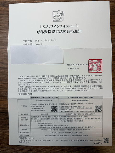 外観は若干レンガ味が入り混じる色調度の高い明るいルビー。ドライイチジク、ドライプルーン、熟したカシスやブラックベリーの黒系果実。湿った土、なめし革、動物の毛皮、ジビエを思わせるゲイミーなニュアンス。ナツメグやリコリスのスパイス。セージやローリエにバラのフローラル感。数え上げたらキリがないぐらいの複雑な構成。香りの開き具合は十分。低めの重心。逞しく、野生味溢れる佇まい。やや粘性のある滑らかな口当たり。集中度、凝縮度、共に高い果実味のミディアムボディ。シルキーながらもグリップ力のあるタンニンが心地良くシャープ酸が骨格さを形成。鼻から抜ける熟成ブーケにミネラルが入り混じる何とも個性的な余韻。サバンナに生きる野生動物の力強さ、柔軟性を連想させる生命力に満ちた荘厳なフィネス。今飲んでも圧倒的、10年後に飲んだらパラダイスであろう長命なポテンシャルを有する素晴らしい逸品。これは凄い。 合格通知、やっぱり嬉しい。