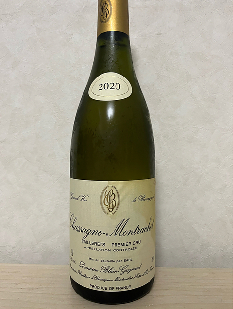 ブラン・ガニャールのシャサーニュ・モンラッシェ 1er cru カイユレ 2020 フランス、ブルゴーニュ シャルドネ 透明感のある麦わら色。開けたては柑橘、白桃、ミネラルの香り、時間が経つと砂糖や乳酸の香りがして来た。柑橘にまぶした砂糖のような果実味、バランスの良い酸味。 ブラン・ガニャールのカイユレを開けました(^^) 冷凍庫で冷やしている間にエチケットが可哀想な事になってしまいました(^_^;) ワイン自体は美味しく飲めました♫