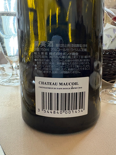2010 シャトー・モーコイユ レスプリ・ド・モーコイユ シャトーヌフ・デュ・パプ ルージュ コート・デュ・ローヌ/フランス #vinicaに感謝 10/18フェアウェル ワイン会@長岡・アンジェ・その8 8本目は、3/3&mackyさんご夫妻から。 ぱっと見、カリフォルニアとかオーストラリアなど、新世界ワインのような陽キャラなエチケットに見えますが、ひと口味わうと、そのクラシックな世界観との落差に「ギャップ萌え」するワインですね⁉︎ ヴィジュアルから入ると、良い意味で裏切られます(笑) 素晴らしい熟度の果実の旨みと、適切な熟成感、複雑で濃厚な飲みごたえのワイン。 強さとエレガントさが両立した、めちゃくちゃ美味しい、素晴らしいシャトーヌフ・デュ・パプでした✨ 3/3さん、mackyさん、こちらも本当に美味しいワインでした♡ 御相伴にあずからせていだき、誠にありがとうございました✨