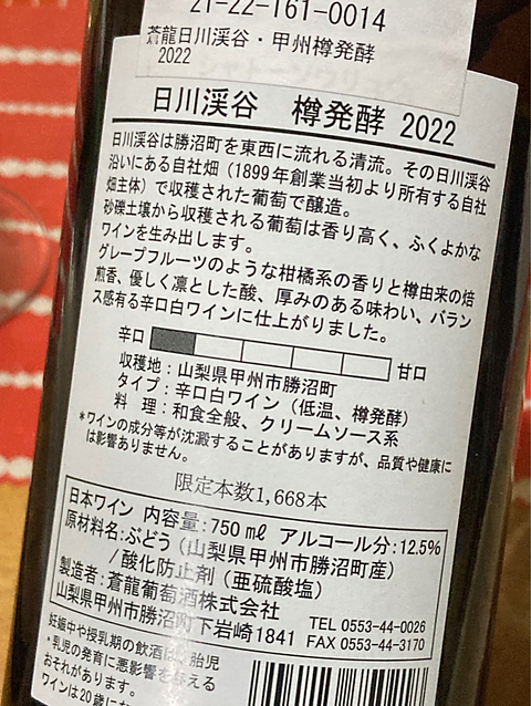 Ch. Soryu 日川渓谷 甲州樽醗酵写真(ワイン) by YD