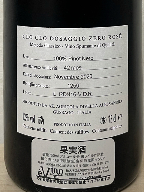 アレッサンドラ・ディベッラのクロ・クロ・ロゼ イタリア、ロンバルディア ピノ・ネロ100 きめ細かい泡。濃いオレンジ色。アセロラやクランベリーなどの酸っぱい赤系果実の香り、酵母の香り、次第に砂糖漬けしたベリーの甘い香りがして来た。優しい果実味、豊富な酸味。 アレッサンドラ・ディベッラのロゼ泡を開けました(^^) ちょっと(かなり)酸っぱかったですが好きな味わいでした♫