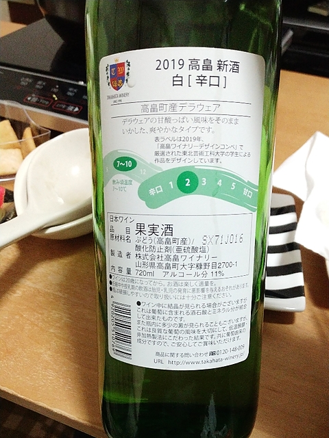 TAKAHATA WINERY 高畠 Takahata Nouveau 2019 白 辛口