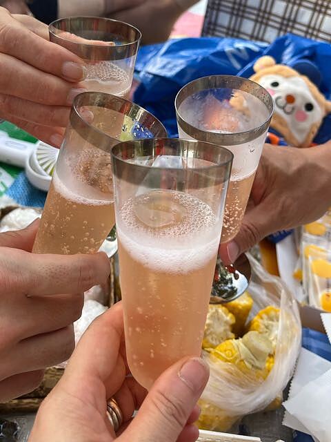 外飲みとても気持ち良さそうです♫ 僕もおにぎり4個お願いします(^^)