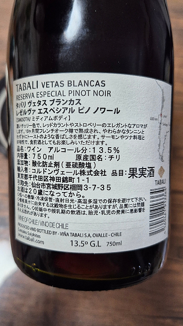 Tabalí Vetas Blancas Reserva Especial Pinot Noir