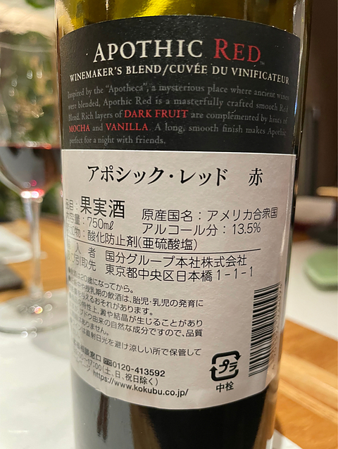 昨夜飲んだワイン。 昨夜は日本橋で会食。ビールで乾杯したあと、泡と赤をボトルでいただきました。そのうちの赤をポストします。 万人受け系の味わいと思い、アポシックレッドをチョイス。コストコ会員を随分前に退会したので、すごく久しぶりにいただきます。 期待通りの甘やかさ。ただ、思ったよりだいぶ軽やかですね。もう少し重いかと思い込んでました。ただ、皆さん、飲みやすくて美味しい、と評価いただき、ひと安心でした。 さて、金曜日、今日も一日頑張りましょう!