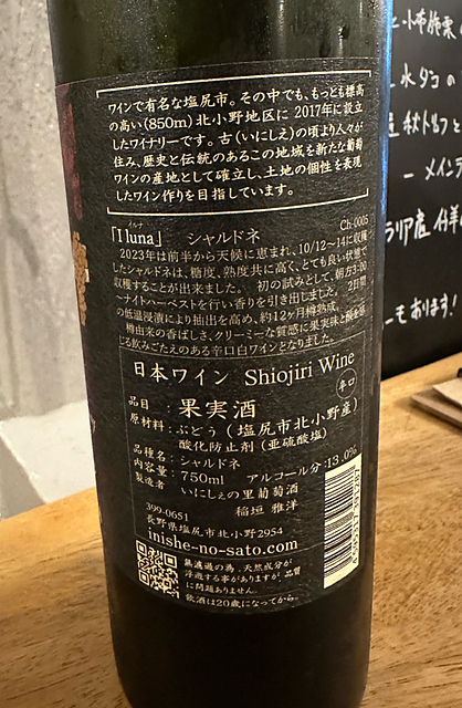 いにしぇの里 葡萄酒さんの イルナ シャルドネ2023です。 いい香り〜♡ でもちょっと、とおーくに苦味を感じます。