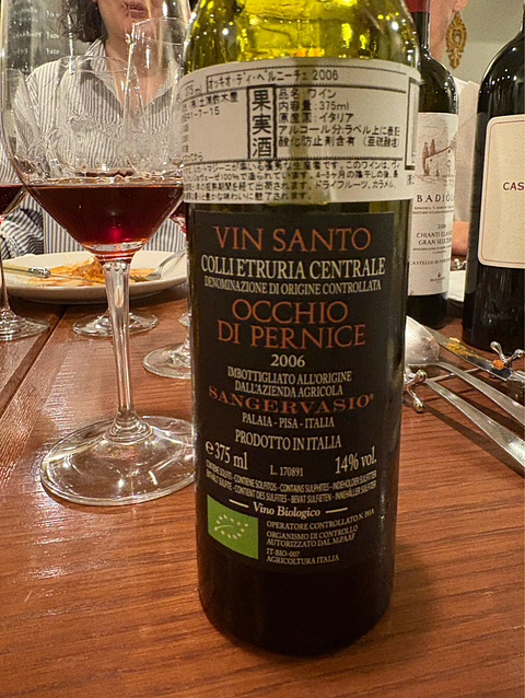 2006 サンジェルヴァジオ オッキオ・ディ・ぺルニーチェ DOCコッリ・エトルリア・チェントラーレ ヴィンサント vinicaに感謝✨ 10/2サンジョヴェーゼ会@西荻 ダ・マサ・その12 いつも変態ワインを持ち寄る「ワイン変質者の会」(命名:DaMasaさん)から発展したワイン会。 12本目、大トリのワインは、今回唯一の参加者持ち込みのワイン、naga cie manさんが見つけてきたサンジョヴェーゼ100%のヴィン・サント‼︎‼︎‼︎ いやあ、あるんですね、サンジョヴェーゼ100%のヴィン・サントがなんて⁉︎ さすが「ワイン変質者」の会です(笑) ところで、ワイン名の「オッキオ・ディ・ぺルニーチェ/Occhio Di Pernice」ですが、これはイタリア語で「山鶉(うずら)の目」の意味だそうです。 あれ? 「ウイユ・ド・ペルドリ/Oeil de Perdrix」と同じじゃないですか⁉︎ スイスのロゼやシャンパーニュで使われるこの言葉を、まさかこんなところで見ることになるとは、思いもしませんでした! いやはや、本当に面白くて美味しくてタメになるワイン会でした。 このワインをご提供くださったnaga cie manさん、会を企画してくださったマサさん、そしてご参加の皆さま、楽しい時間をありがとうございました✨