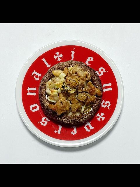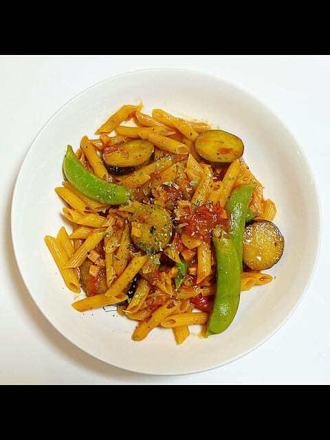 “Penne all'Arrabbiata” “Grilled shiitake mushrooms stuffed minced chicken”