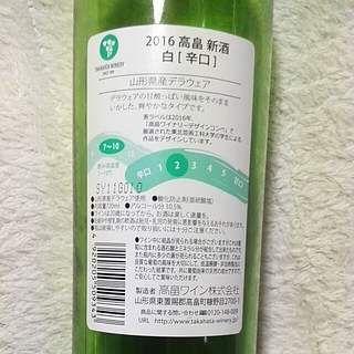 TAKAHATA WINERY 高畠 Takahata Nouveau 2016 白 辛口
