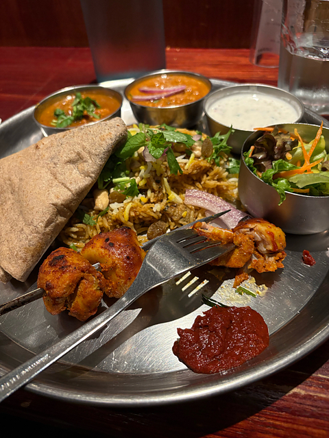 NV グローバー・ザンパ・ヴィンヤーズ ソワレ ブリュット ナーシク・ヴァレー マハーラーシュトラ/インド 日曜日のワイン。 所用で出かけた渋谷で、見るものすべてがもの珍しく、キョロキョロうろうろ散歩していて、たまたまエリック・サウスの支店を見かけたので、ちょっと早めの晩ごはん。 南インド風のミールズと仔羊のビリヤニに合わせて、インドのスパークリングワインをいただきました。 爽やかで、すっきりサッパリ、カレーに良く合います♡ たぶん、シュナン・ブラン主体? 果実味と酸、ミネラル感のバランスが秀逸でした✨